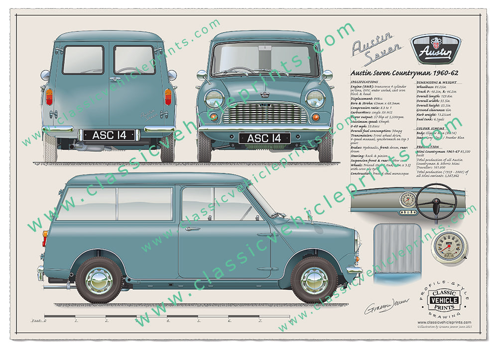 Originally badged as the Austin Seven Countryman, our illustration shows the original model sold between 1960 to 1962 featuring an 848cc engine giving a top speed of just 69mph with the 0-60 “sprint” taking a glacial 33.8 seconds!