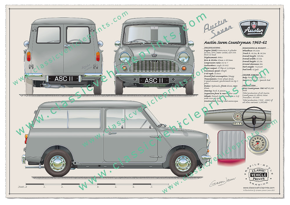 Originally badged as the Austin Seven Countryman, our illustration shows the original model sold between 1960 to 1962 featuring an 848cc engine giving a top speed of just 69mph with the 0-60 “sprint” taking a glacial 33.8 seconds!
