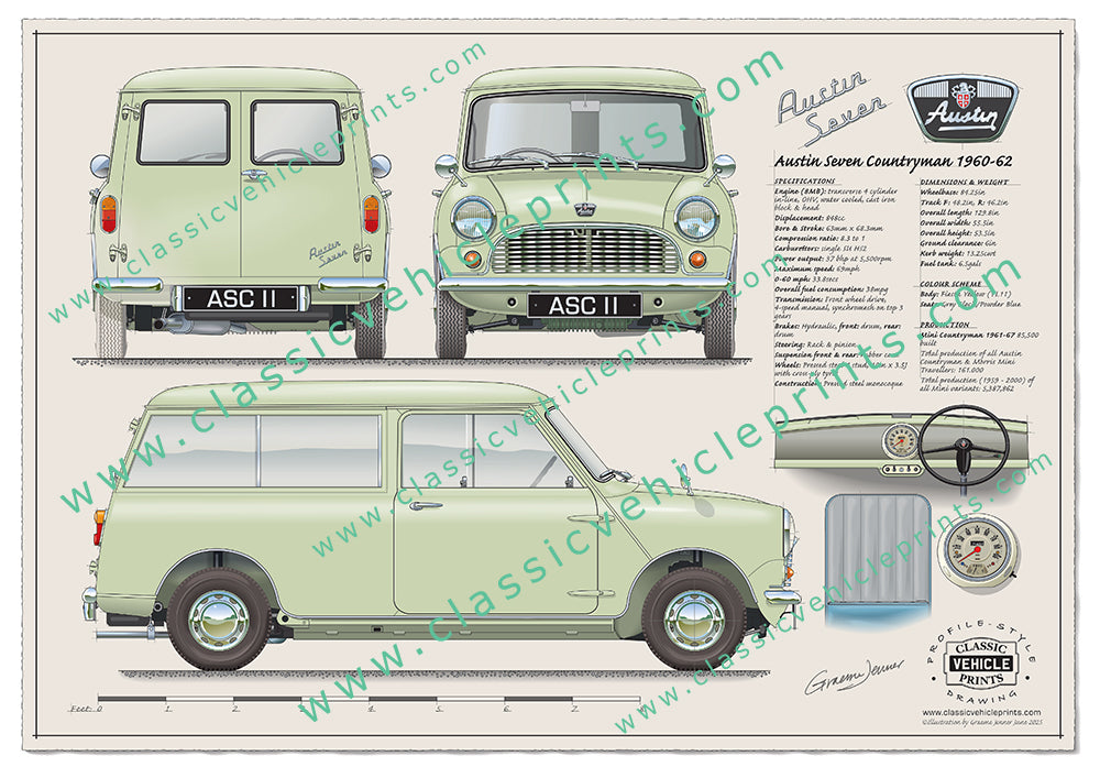 Originally badged as the Austin Seven Countryman, our illustration shows the original model sold between 1960 to 1962 featuring an 848cc engine giving a top speed of just 69mph with the 0-60 “sprint” taking a glacial 33.8 seconds!