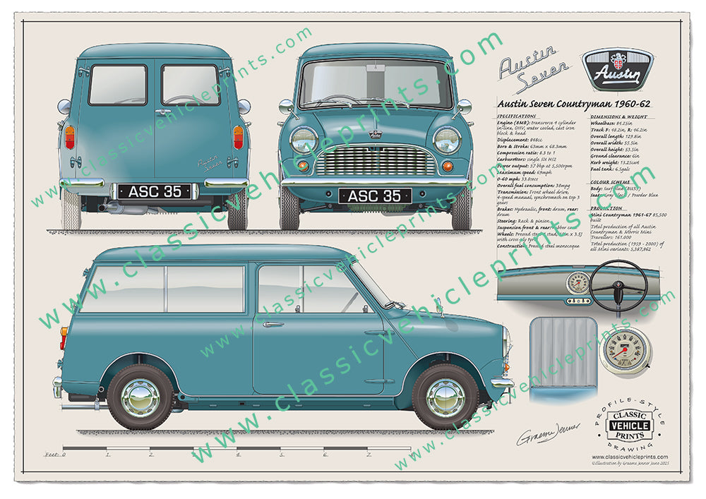 Originally badged as the Austin Seven Countryman, our illustration shows the original model sold between 1960 to 1962 featuring an 848cc engine giving a top speed of just 69mph with the 0-60 “sprint” taking a glacial 33.8 seconds!