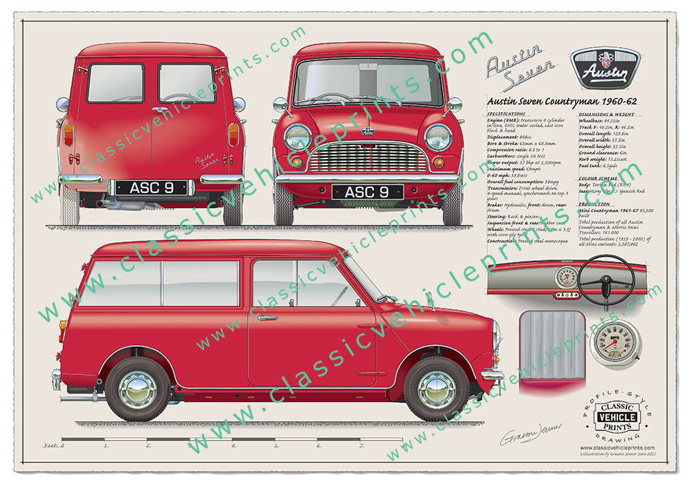 Originally badged as the Austin Seven Countryman, our illustration shows the original model sold between 1960 to 1962 featuring an 848cc engine giving a top speed of just 69mph with the 0-60 “sprint” taking a glacial 33.8 seconds!