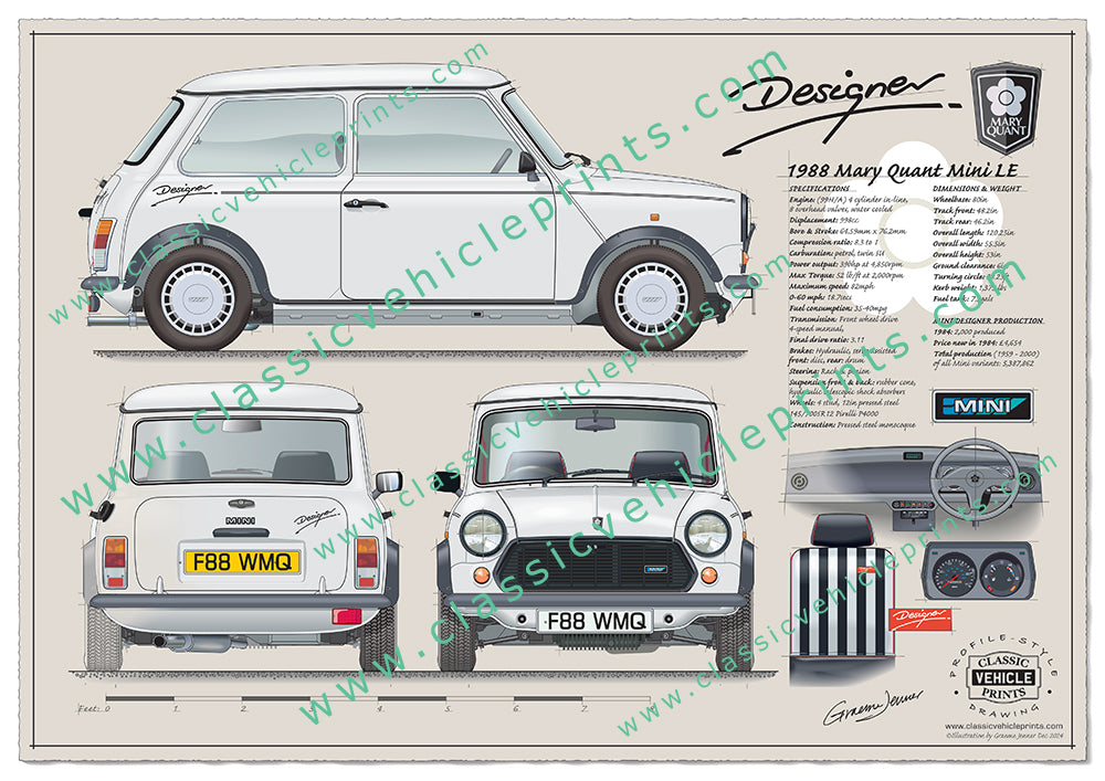 Dame Mary Quant was a British fashions designer that was instrumental in the design of the miniskirt and hotpants. This special edition mini was launched in 1988. The car was based on the LE model, and was available in black or white. 1,000 of each colour were produced.