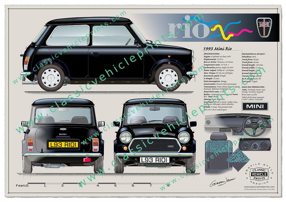 The Mini Rio was a special edition Mini produced in 1993 and was available in three distinctive colours – Black, Caribbean Blue and Turquoise. The car featured a 1275cc engine, extended wheel arches and custom upholstery. In all, just 750 were produced. They cost £5,495 in 1993.
