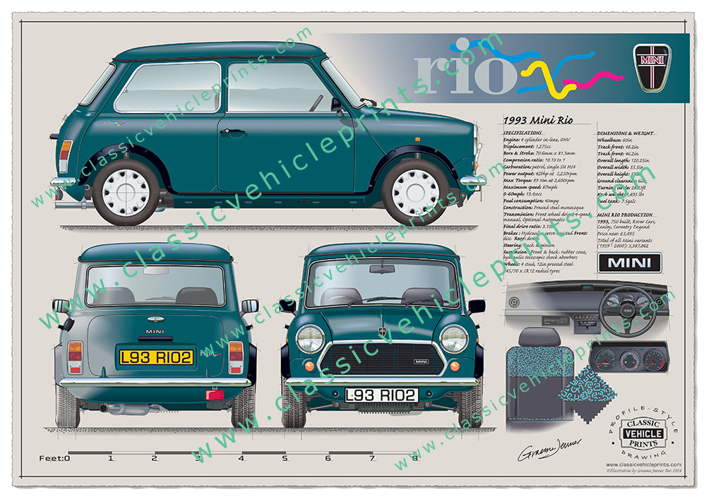 The Mini Rio was a special edition Mini produced in 1993 and was available in three distinctive colours – Black, Caribbean Blue and Turquoise. The car featured a 1275cc engine, extended wheel arches and custom upholstery. In all, just 750 were produced. They cost £5,495 in 1993.