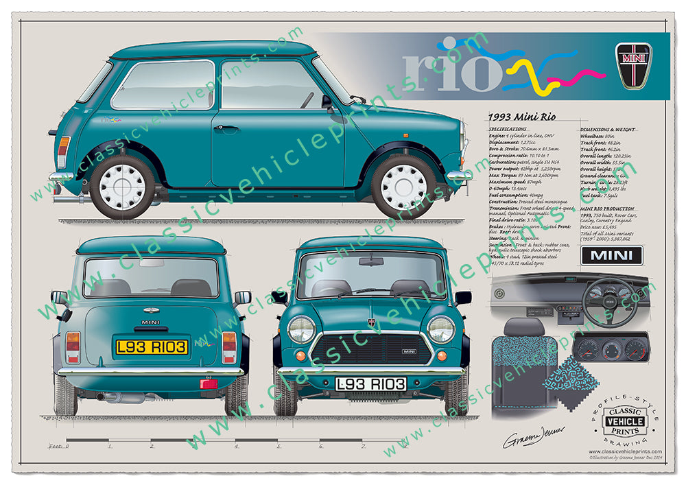 The Mini Rio was a special edition Mini produced in 1993 and was available in three distinctive colours – Black, Caribbean Blue and Turquoise. The car featured a 1275cc engine, extended wheel arches and custom upholstery. In all, just 750 were produced. They cost £5,495 in 1993.