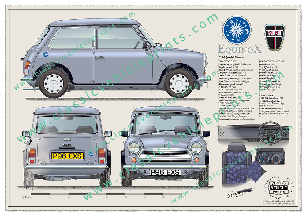 The Mini Equinox was a special edition Mini produced in 1996 and was available in three distinctive colours – Armaranth, Charcoal Grey and Platinum Silver. The car featured a 1275cc engine, extended wheel arches, and custom upholstery. It also featured the clubman-style instrument binnacle. In all, just 750 were produced. They cost £6,195 in 1996.